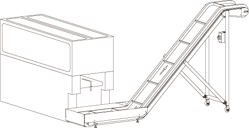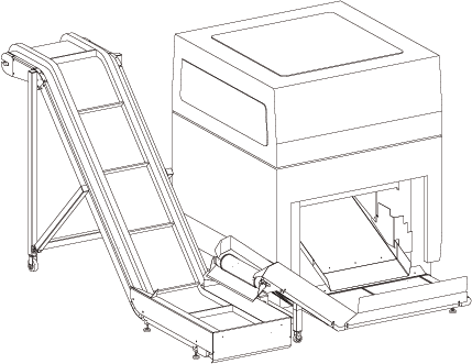 Waste conveyors KF 110-80, KF 145-80 and KF 175-80 can be installed without a preliminary cross conveyor, if the three-knife trimmer is equipped with an internal conveyor. The waste is conveyed away at right-angles to the trimmer.
