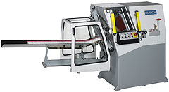 Once the material (square-cut sheets) is inserted the cutting stroke is released when the safety light barrier is activated.