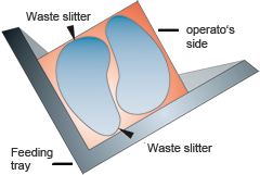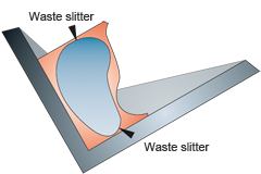 Waste slitters are positioned in such a way that the waste of the first print is cut off and falls down easily.