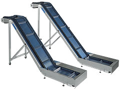 Das Förderband läßt sich entsprechend den räumlichen Verhältnissen links- oder rechtsseitig fördernd oder auch gerade wegführend von der Maschine aufstellen.