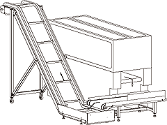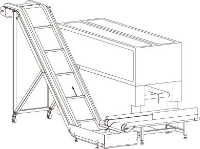 Bei Dreischneidern mit integriertem Förderbändern können die Späneförderbänder KF 110-80, KF 145-80 und KF 175-80 ohne vorgeschaltetes Hilfsförderband installiert werden. Hierbei erfolgt der Späneabtransport im rechten Winkel vom Dreischneider weg.