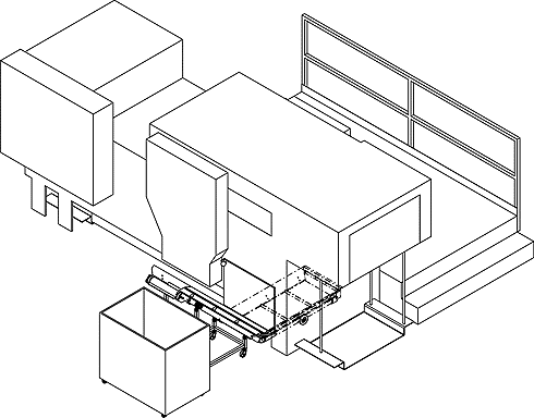 Zum Abtransport von Stanzabfällen mit zwei Späneförderbändern in höhere Container (bis 190 cm Höhe).