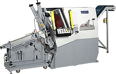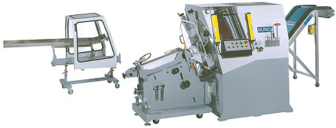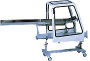 Die Anlage wird anstelle der Auslagerinne an die Maschine angeschlossen. Der Transportwagen dient - wie für Maschinen B und B+P - dem Wegbringen und Lagern der Auslagerinne, die somit wieder schnell montierbar ist.