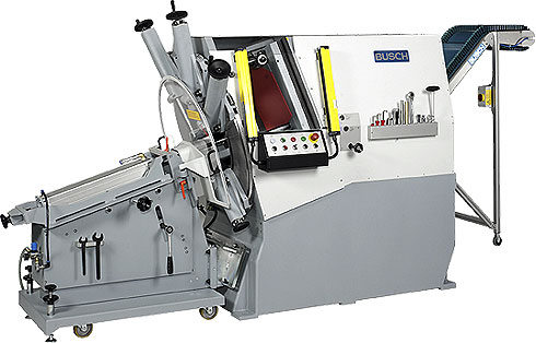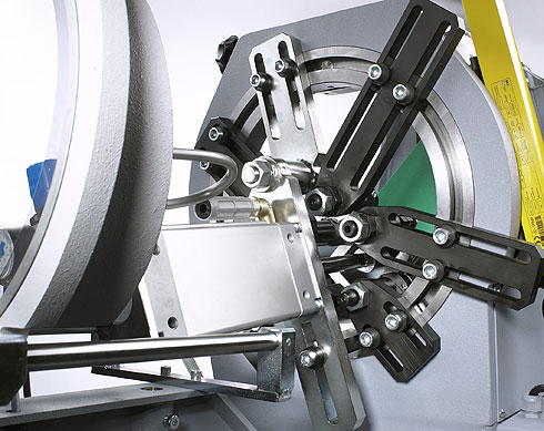 Die Gegendruckeinrichtung ist nach Abnahme der Auslagerinne leicht auf dem Träger zu montieren. Die Schutzhaube dient auch für den Gegendruck als Schutzeinrichtung.